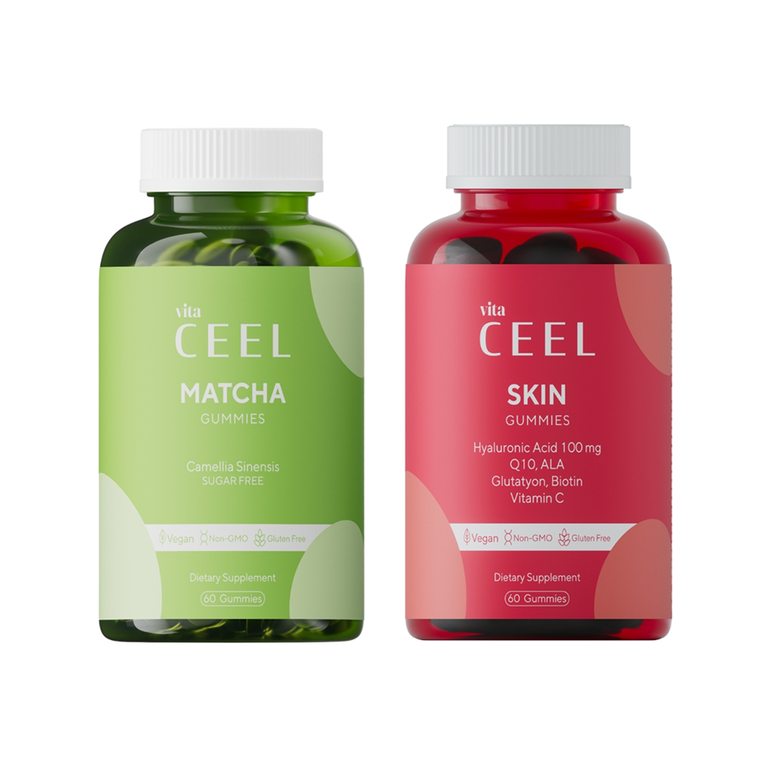 СЕТ ВЕГАН ЖЕЛИРАНИ ВИТАМИНИ ЗА ЗДРАВА КОЖА + МАТЧА