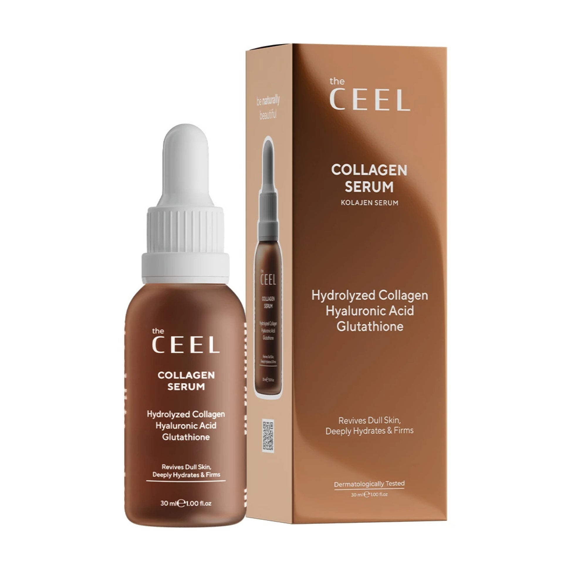 The Ceel Collagen Serum е създаден за възстановяване на еластичността, гладкостта и сиянието на кожата. Формулата комбинира Хидролизиран колаген, Глутатион и Хиалуронова киселина – три активни съставки, които подпомагат стягането, хидратацията и изравняването на тена.