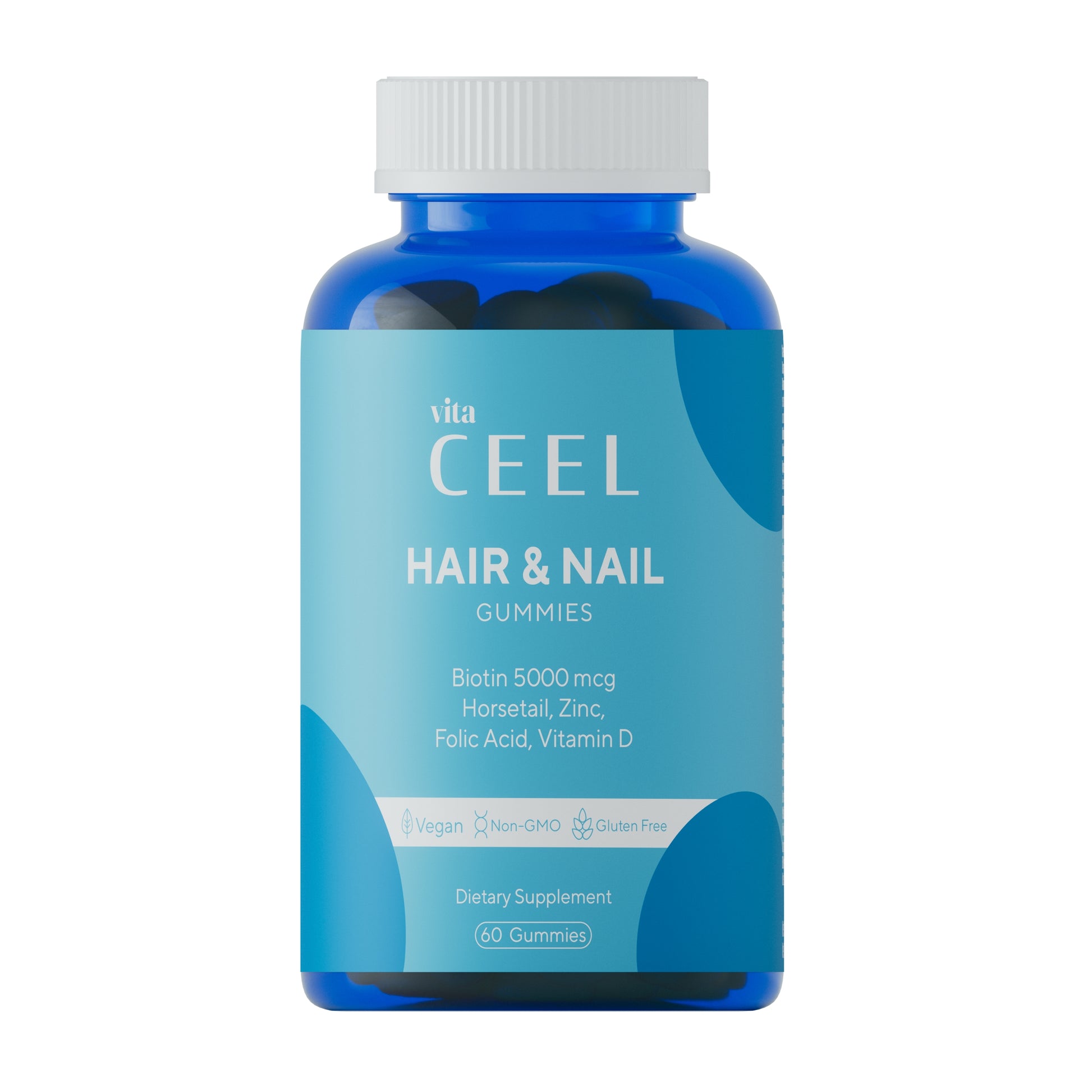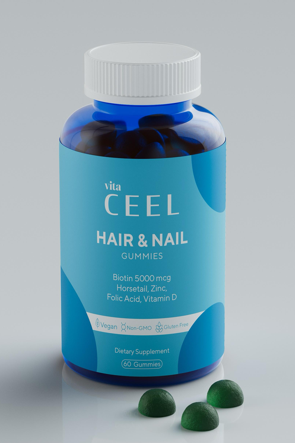 Vita Ceel Hair & Nail Gummies са създадени, за да подпомогнат здравината и растежа на косата и ноктите. Специалната комбинация от витамини и минерали, включително Фолиева киселина, Биотин, Витамин D и екстракт от полски Хвощ действа отвътре, като подхранва космените фоликули и стимулира по-здрава, жизнена и бързо растяща коса, както и по-здрави и устойчиви нокти. Препоръчителен прием: 2 желирани таблетки дневно, след хранене.